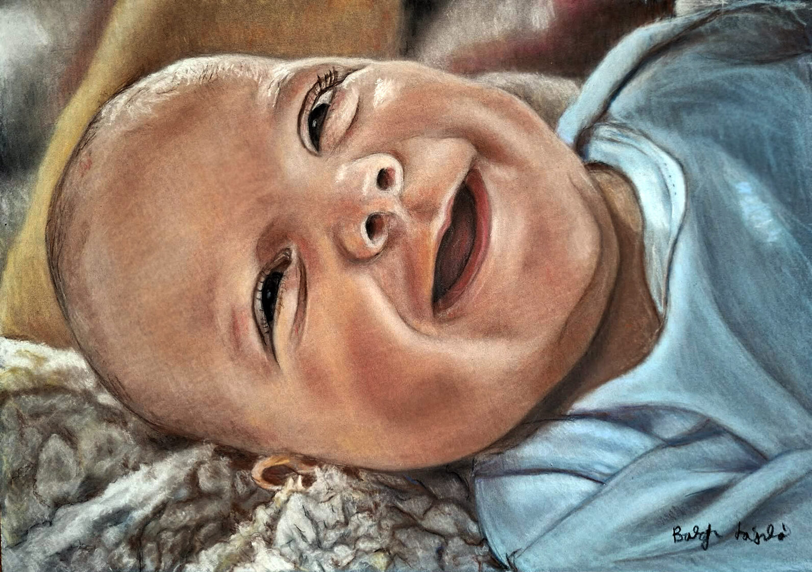 kisgyerekportré! szénpor, szénceruza A/3-as műszaki rajzlap ajándékba készült -