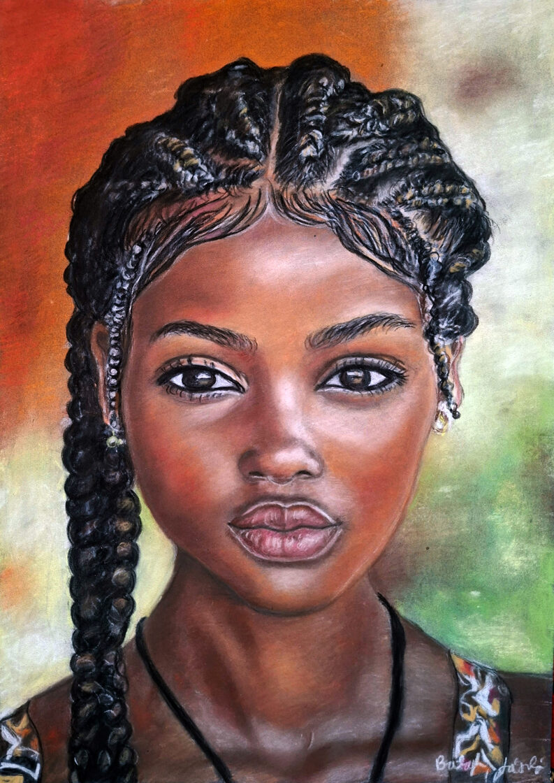 kislányról készült karikatúra rajz A/3 méret szénceruza rajz rendelésre készült -